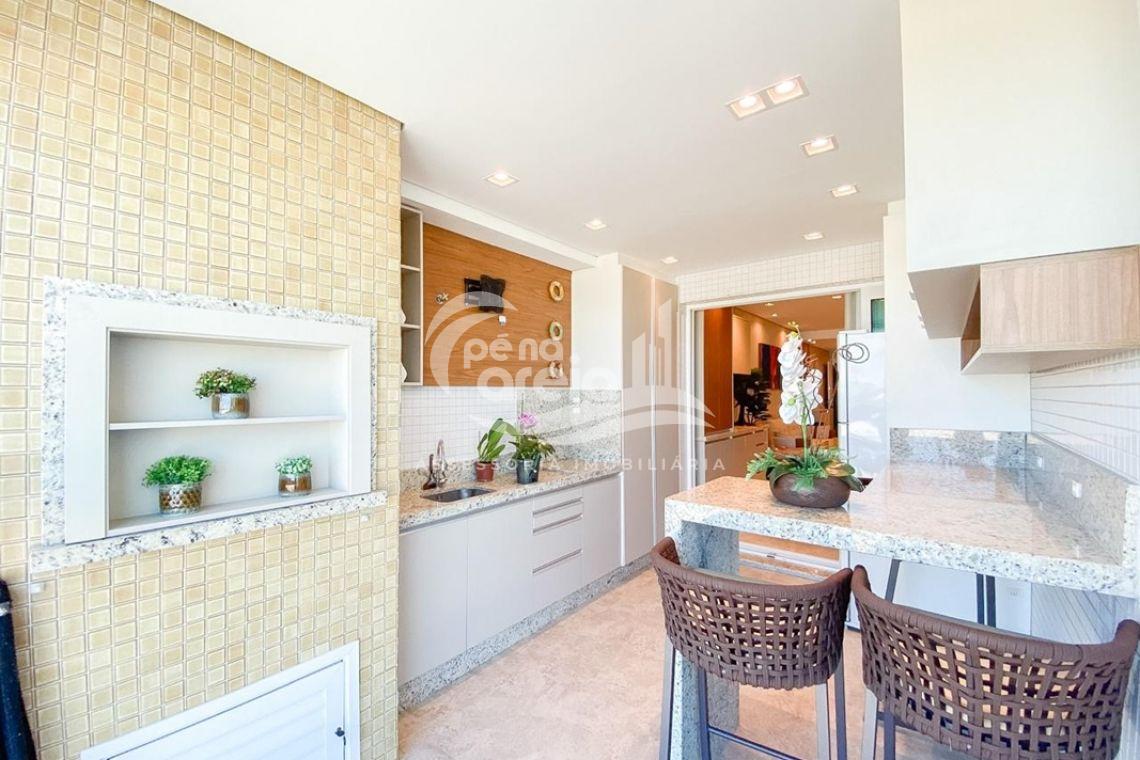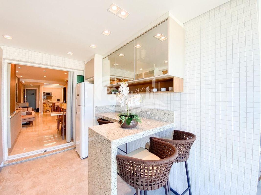 ✅ Sacada integrada a sala e a cozinha com o piso nivelado, churrasqueira à carvão, fechamento de vidro reiki e vista deslumbrante para o mar
