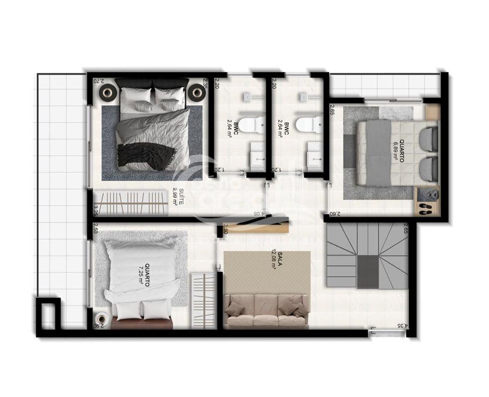 02 dormitórios (sendo 02 Suítes), 01 bwc