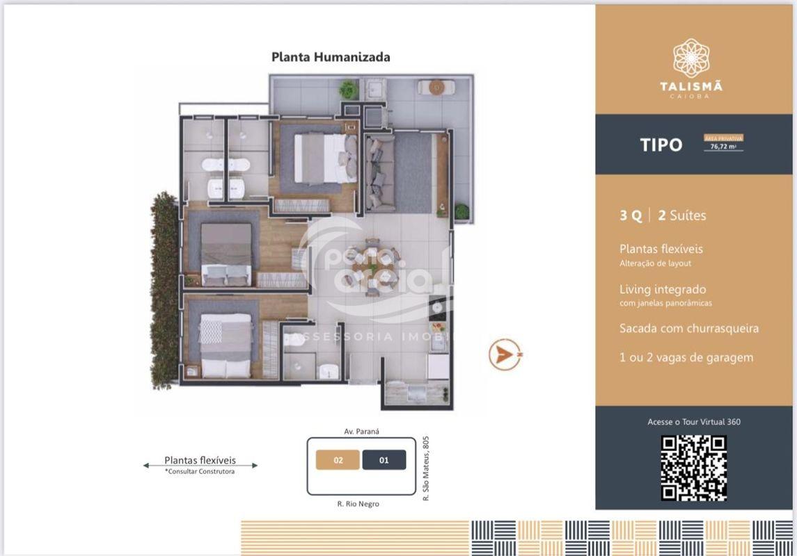 Área privativa de apartamento de 76,72m².