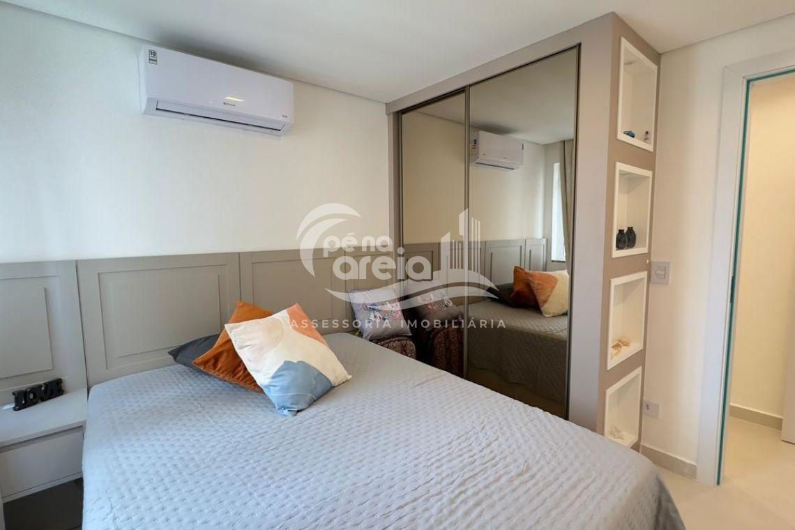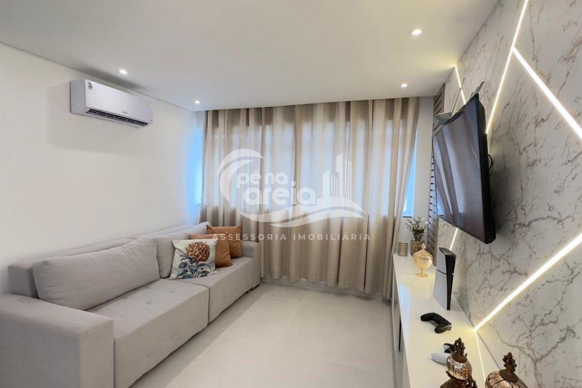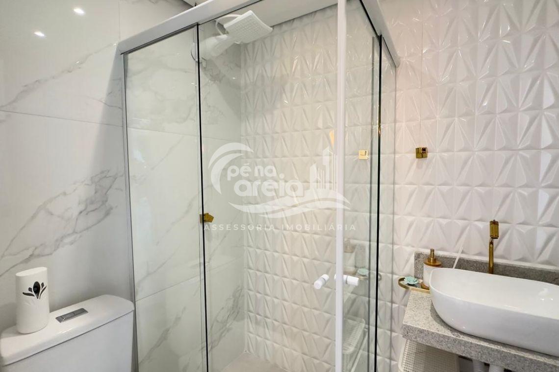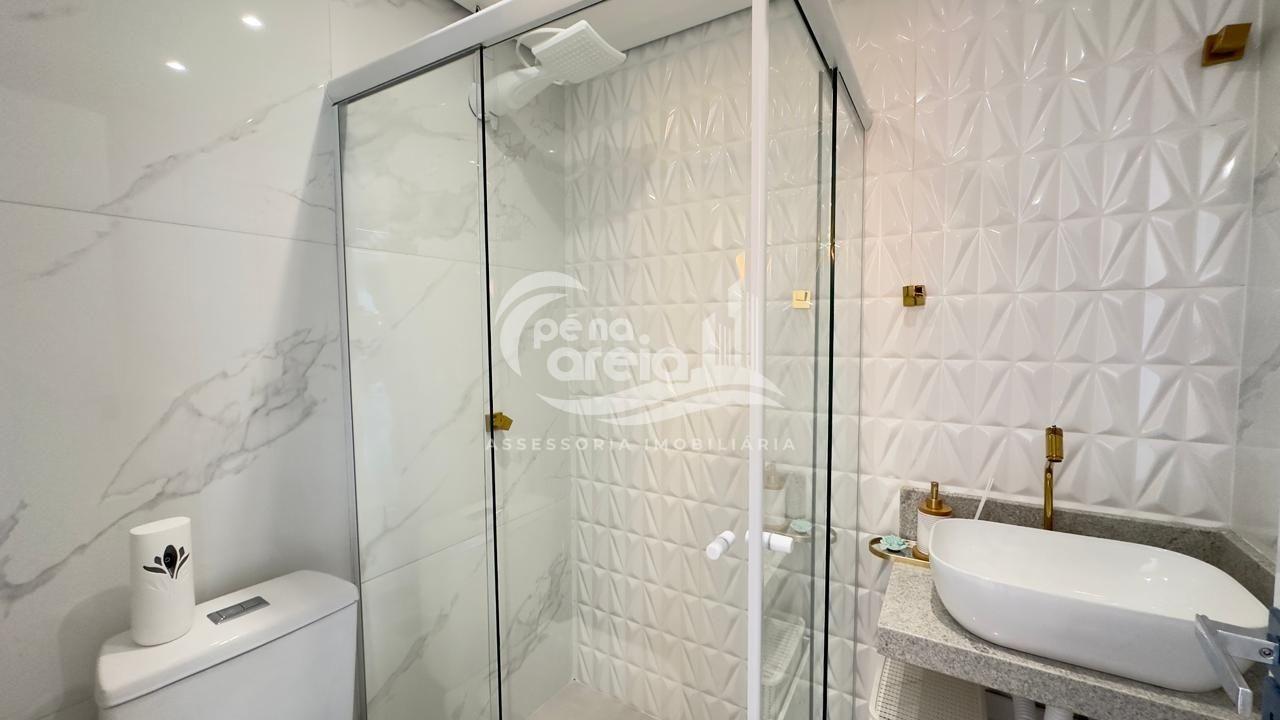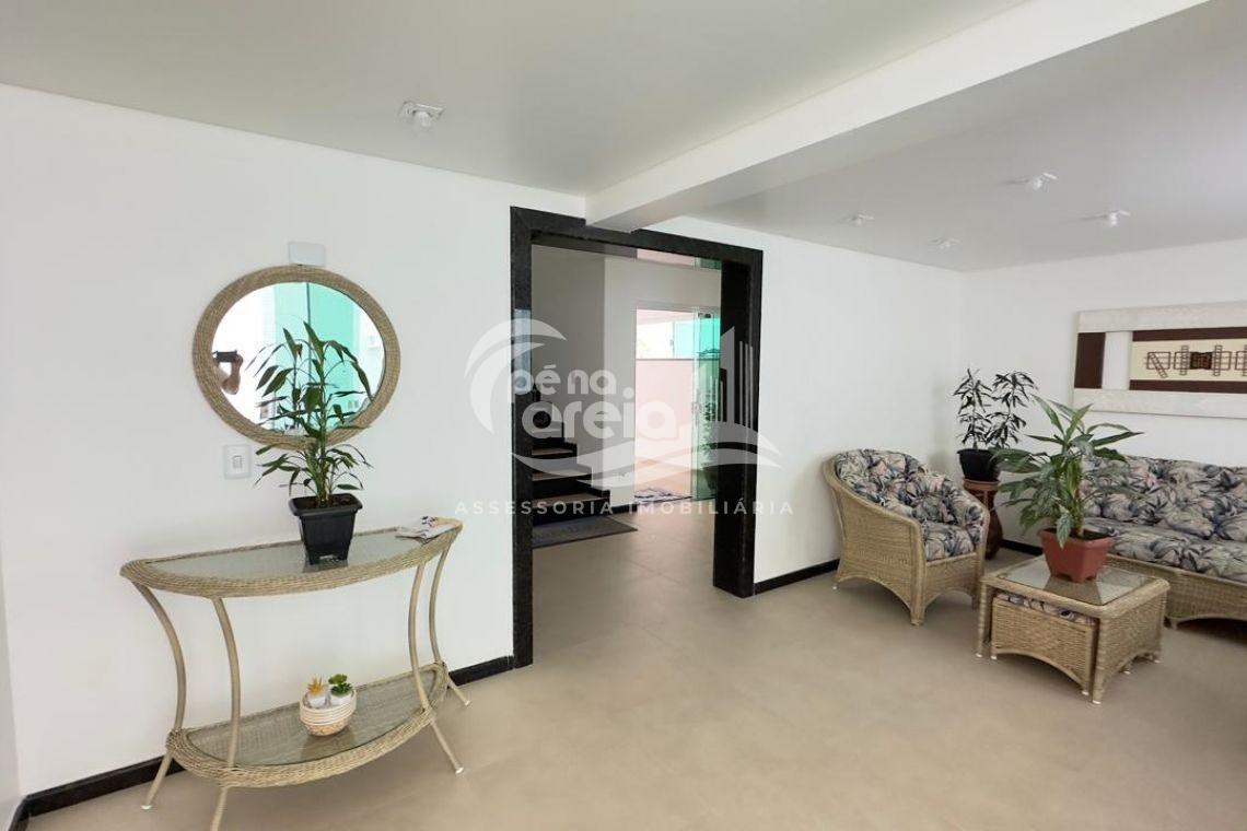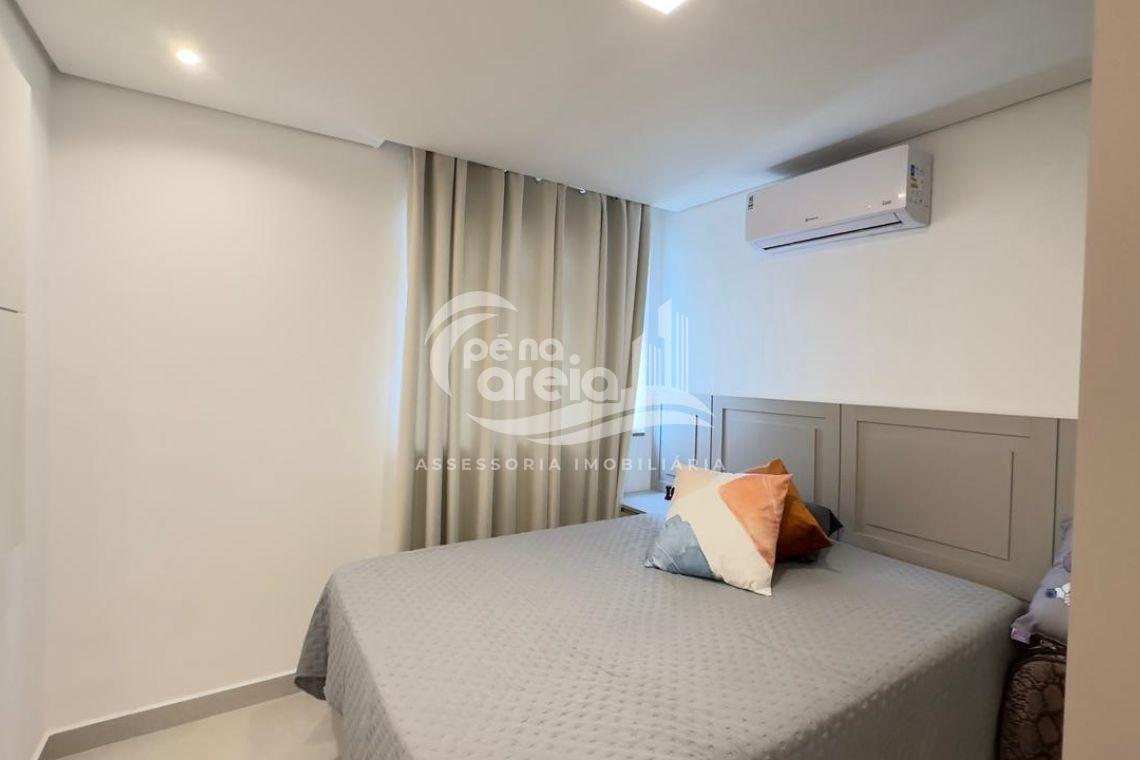 São 135 m² privativos, totalmente climatizada, finamente reformada e decorada. Possui ampla sala de estar com rebaixamento em gesso, 3 dormitórios (1 suíte) e banheiro social. No pavimento superior, sala de jantar integrada à cozinha sob medida, churrasqueira a carvão, lavabo e um incrível terraço com piscina exclusiva, ducha e vista para o mar e para a serra.