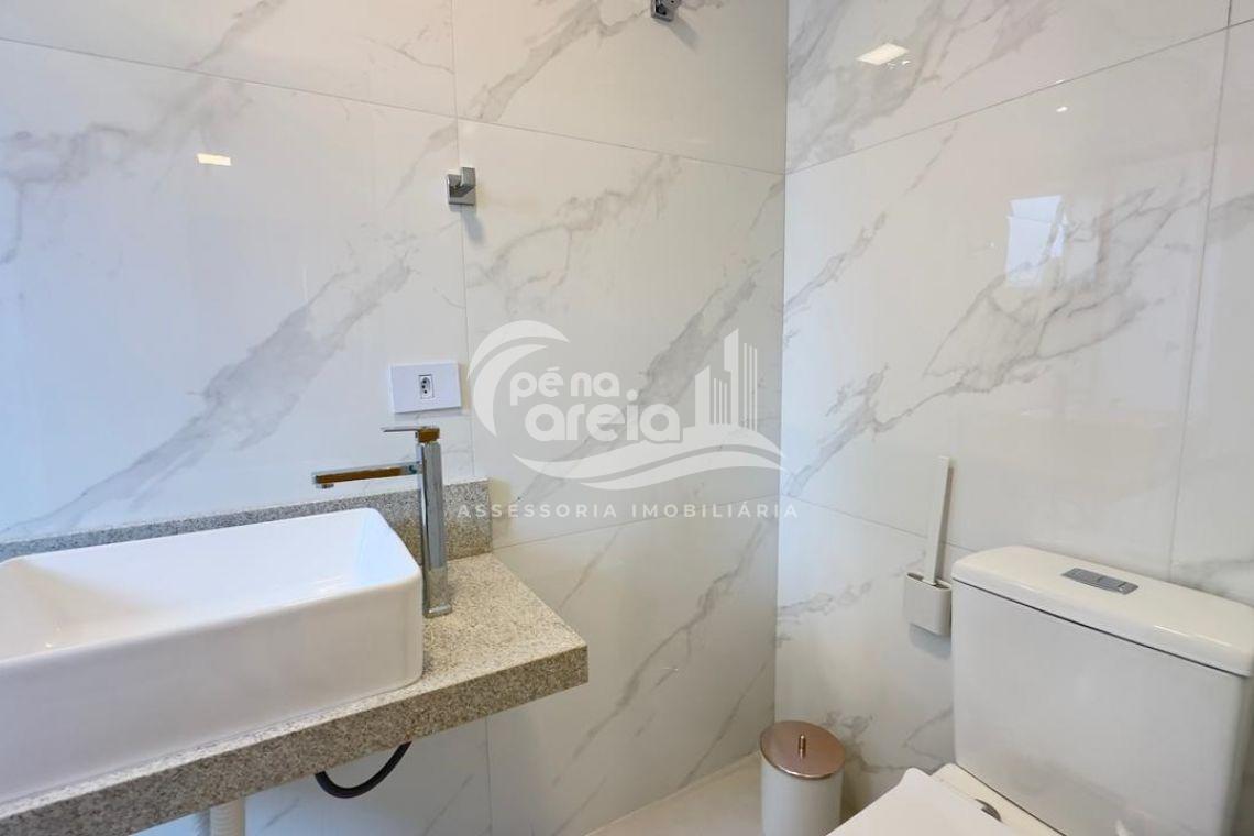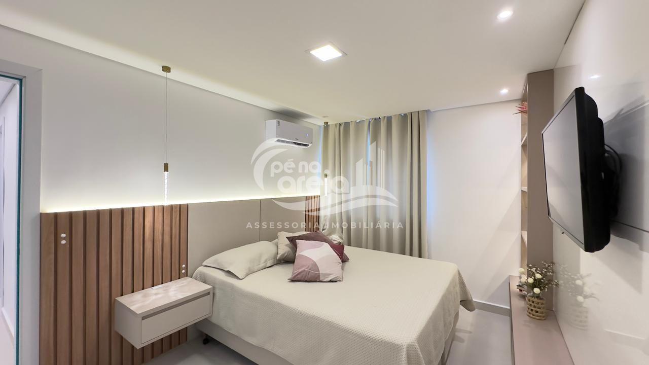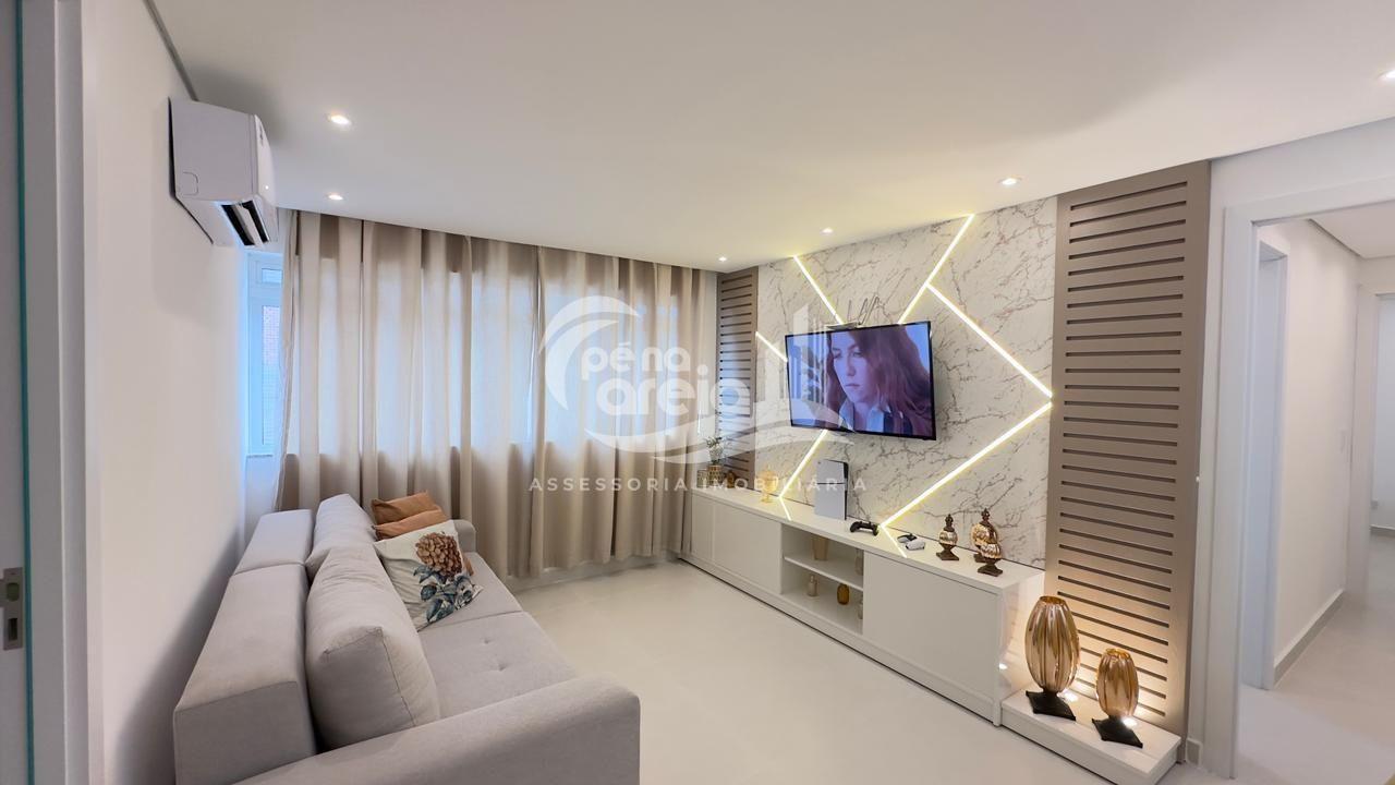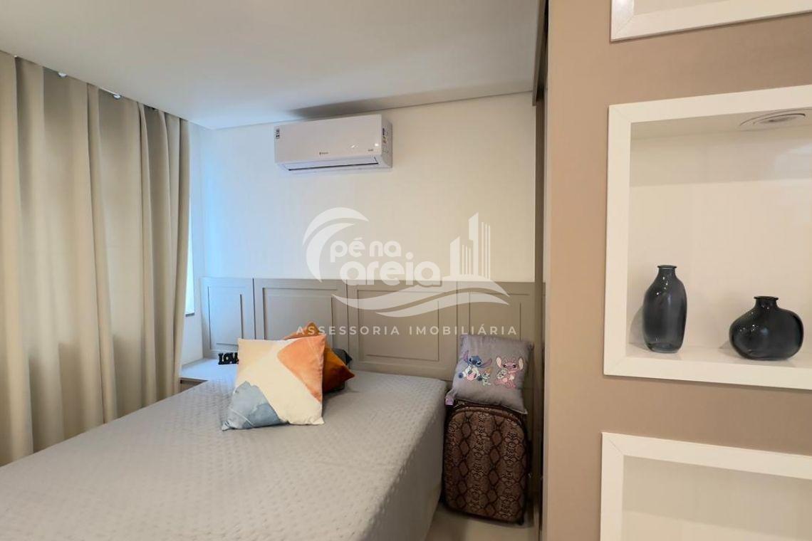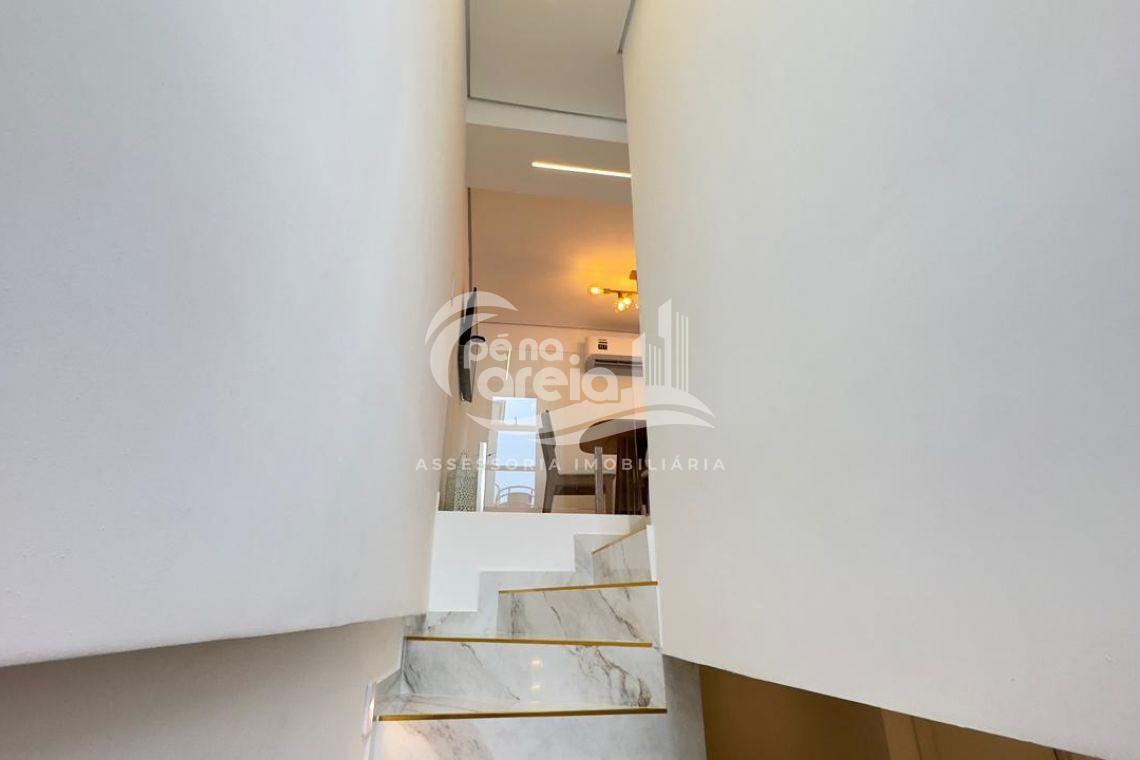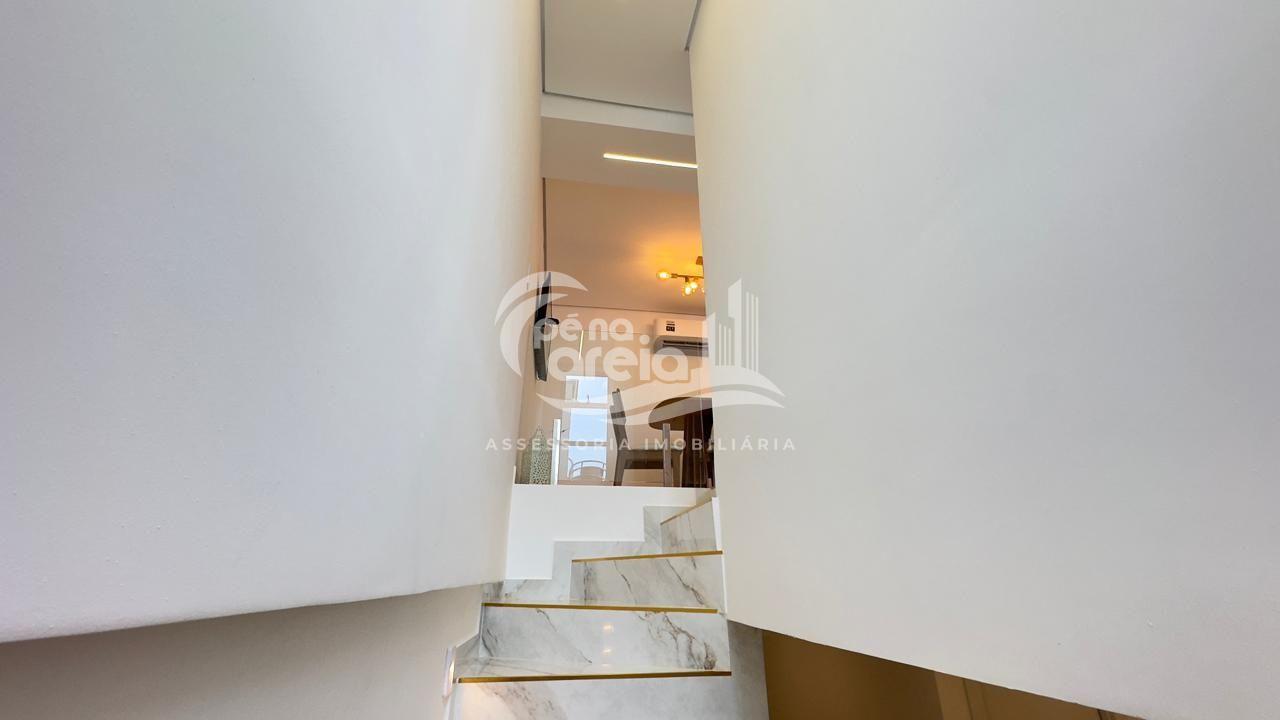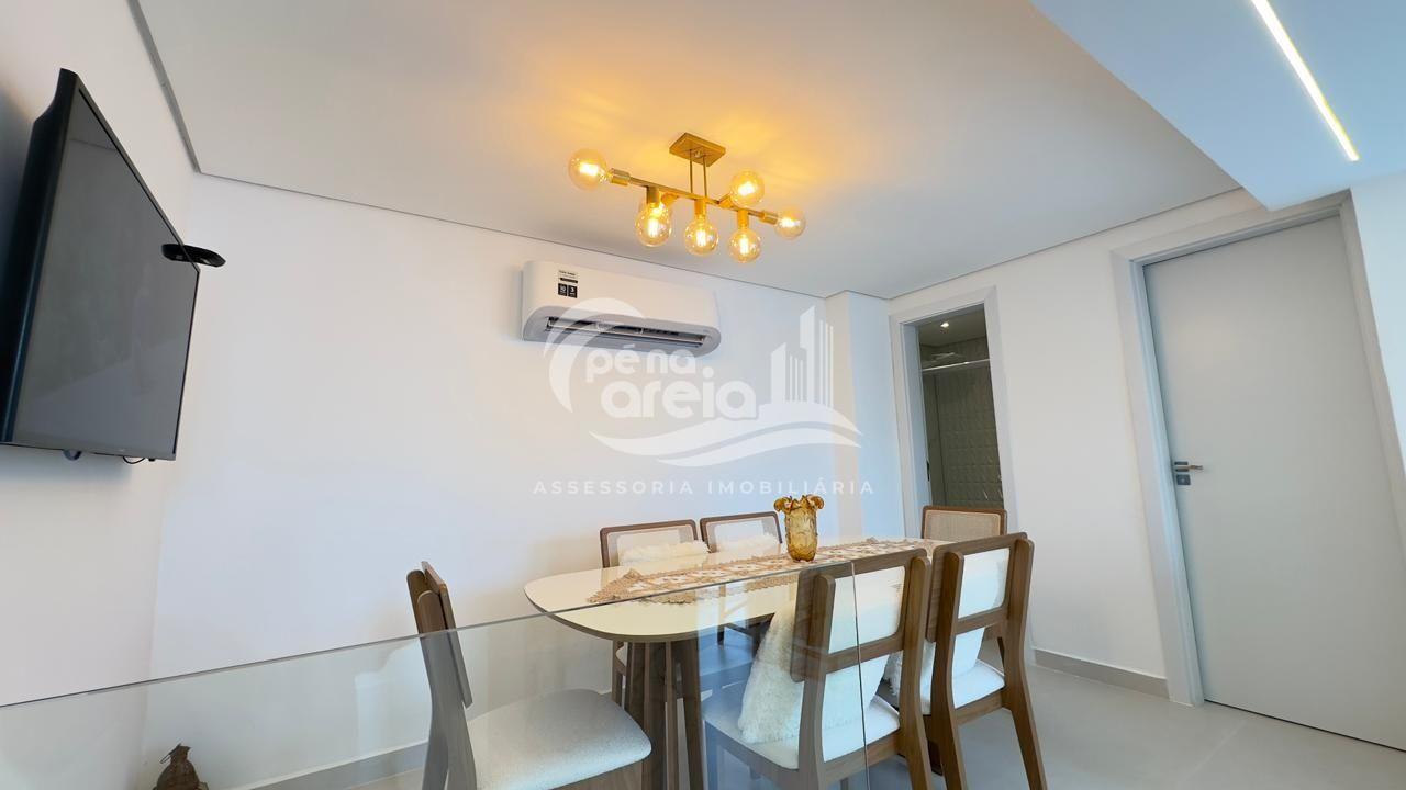 São 135 m² privativos, totalmente climatizada, finamente reformada e decorada. Possui ampla sala de estar com rebaixamento em gesso, 3 dormitórios (1 suíte) e banheiro social. No pavimento superior, sala de jantar integrada à cozinha sob medida, churrasqueira a carvão, lavabo e um incrível terraço com piscina exclusiva, ducha e vista para o mar e para a serra.