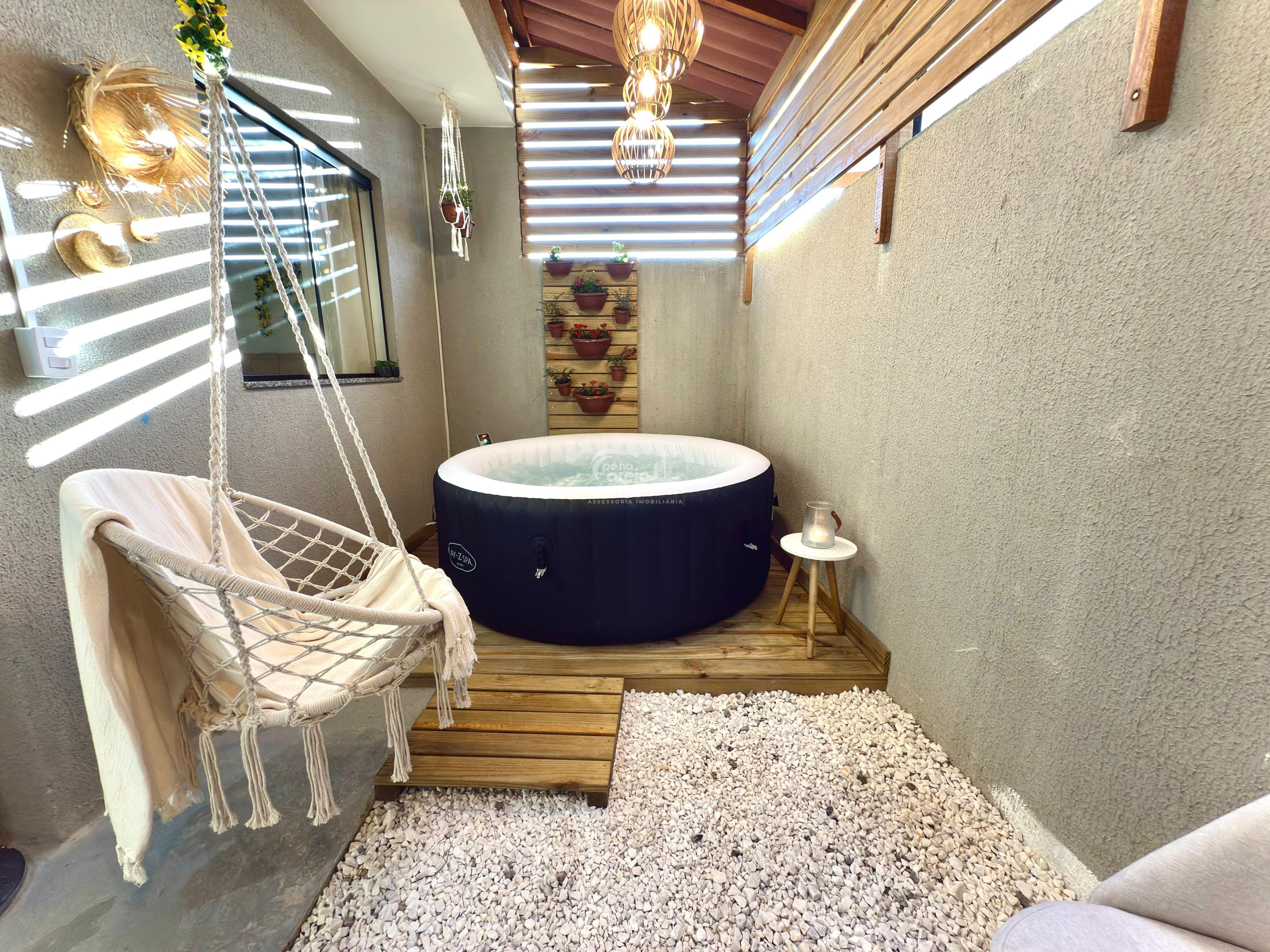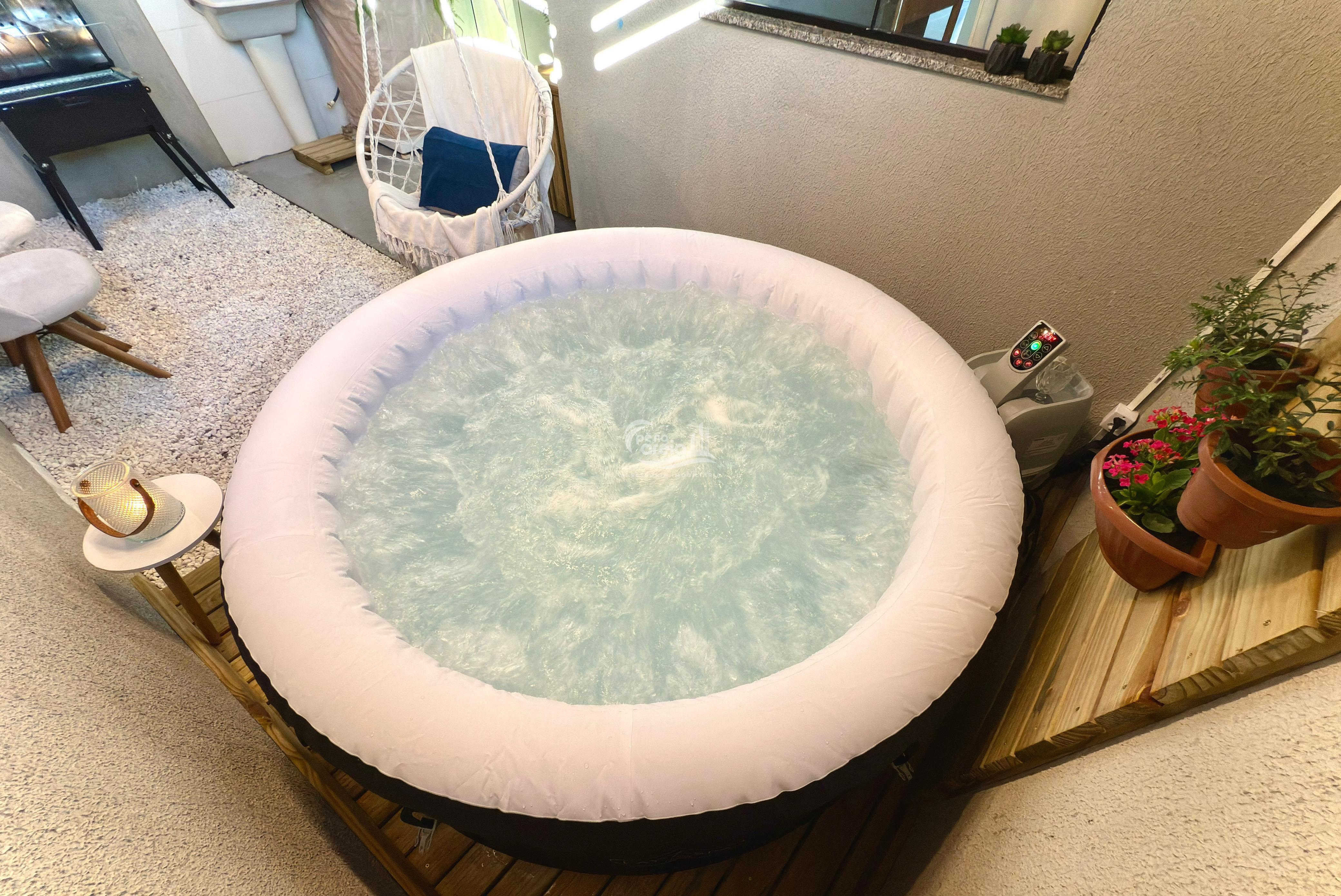 Espaço com uma banheira spa inflável